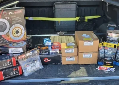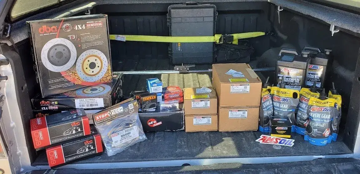 Time to do brakes on the Raptor and it needed a little better stopping power without breaking the bank or doing a full big brake upgrade. Did this on a 1st Generation – 2011 SVT Raptor with the 6.2L motor. It had about 120,000 miles on the odometer so we swapped out some parts while doing the job. Did some Ford remanufactured calipers, Timken wheel bearings/seals, and new studs/lug nuts. Also threw on an aFe Power rear differential cover for the added capacity and ability to drain for future maintenance.